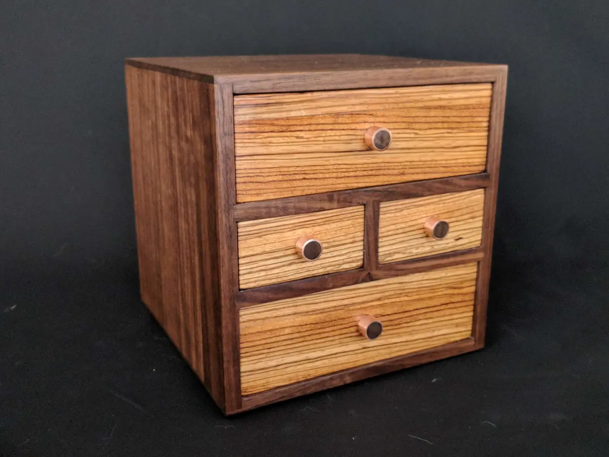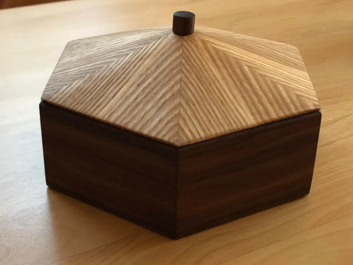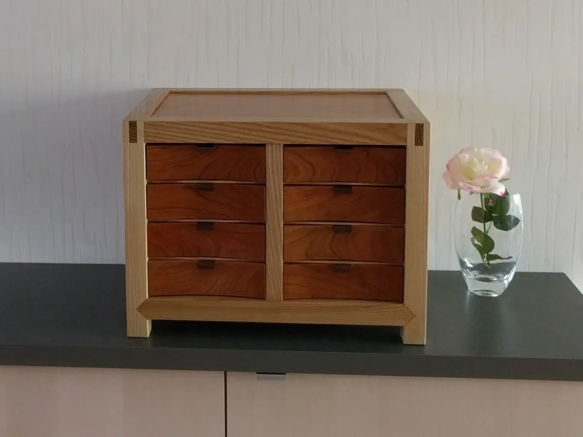 Kistje van essen, esdoorn en noten